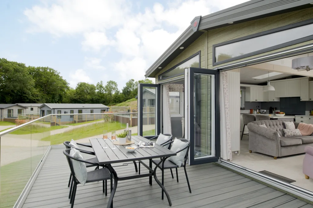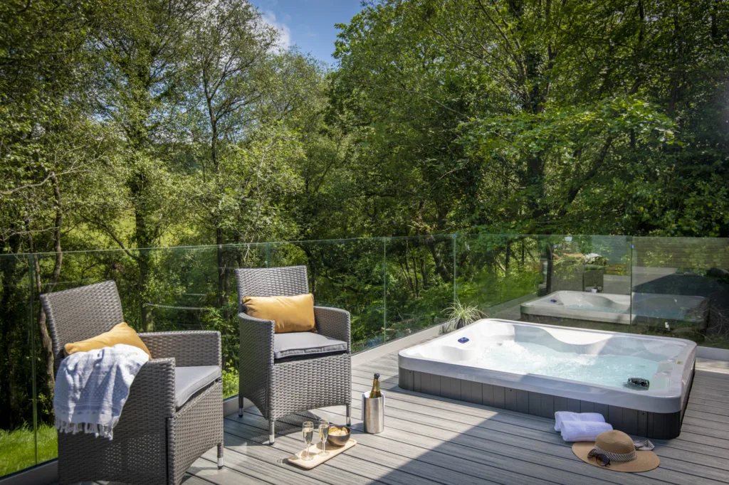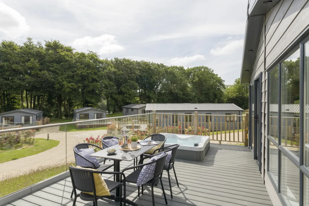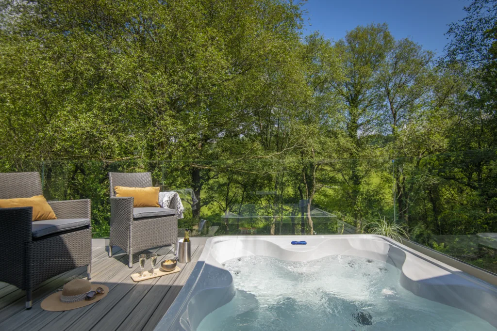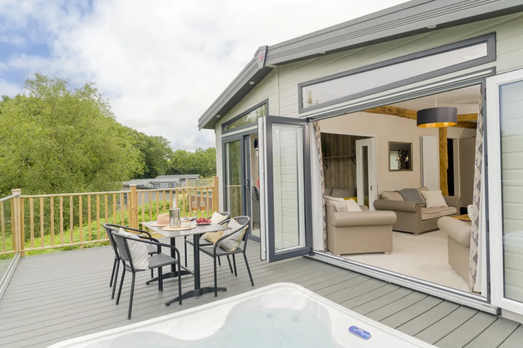 These unique lodges are so light thanks to the beautiful bi-folds leading to decking with hot tub