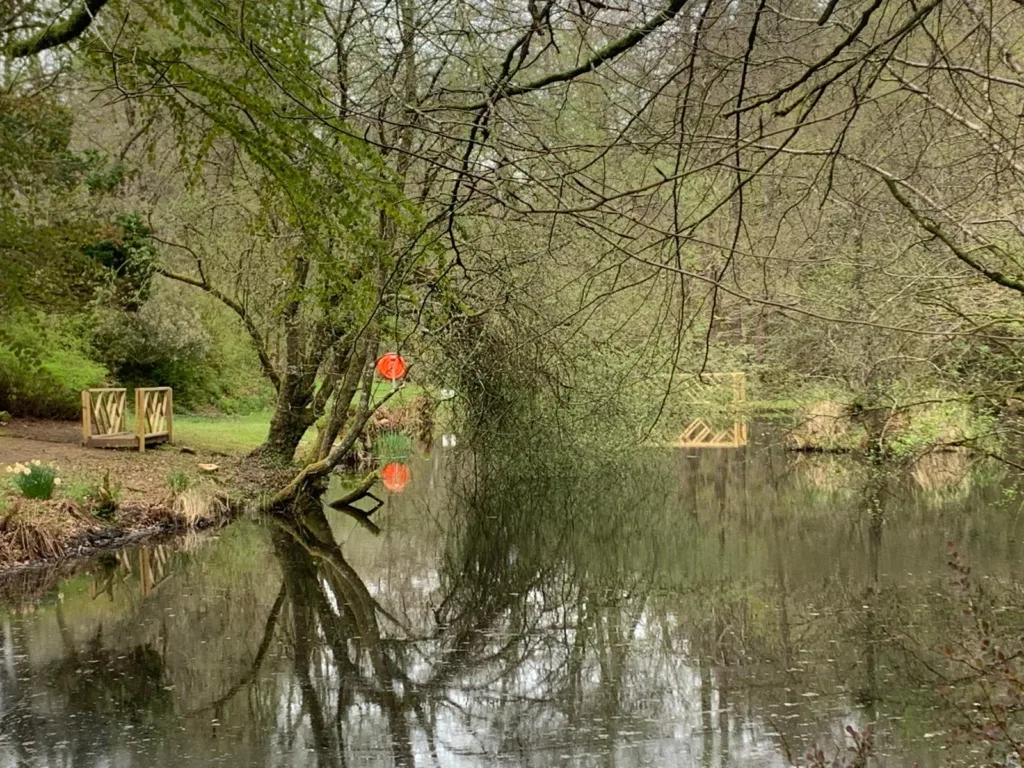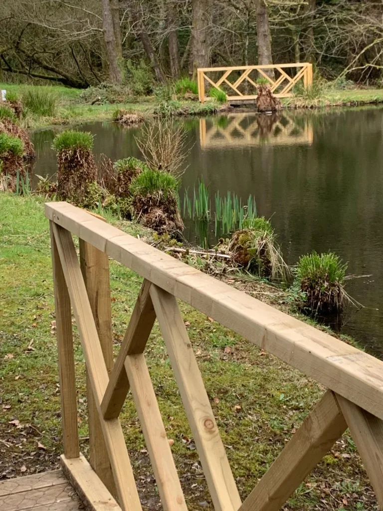 Access to the dipping lake is located at the end of the decking area by The Dabbling Duck, with steps leading down to the lower pond.