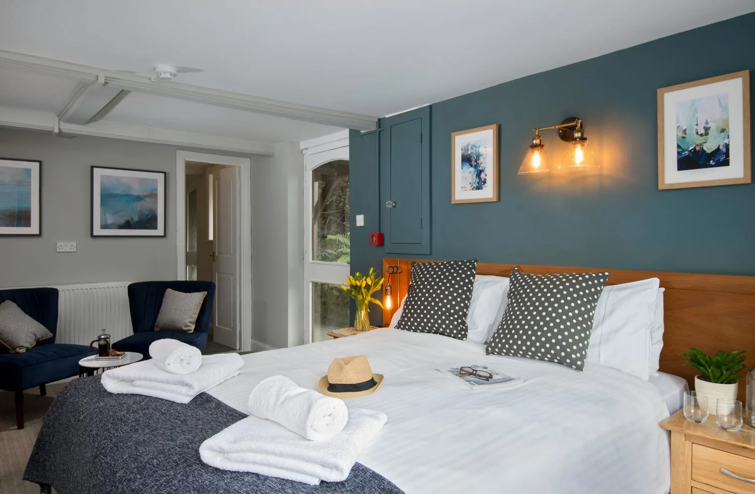 Our Family Rooms cater for families of up to 4 people, with adjoining rooms featuring a double bedroom then a twin room followed by the family bathroom, so you can get away for a family break (and still enjoy some privacy!). Located in the heart of East Devon, there is miles of countryside to explore and burn off some energy, as well as being only a 30 minute drive to the dramatic Jurassic Coastline.