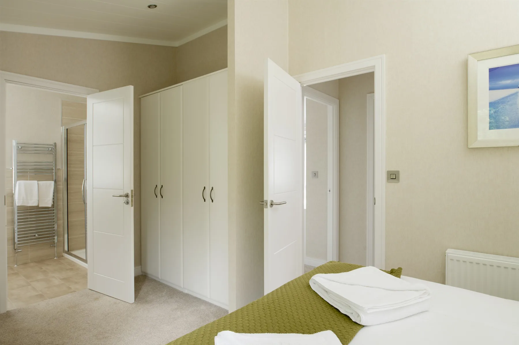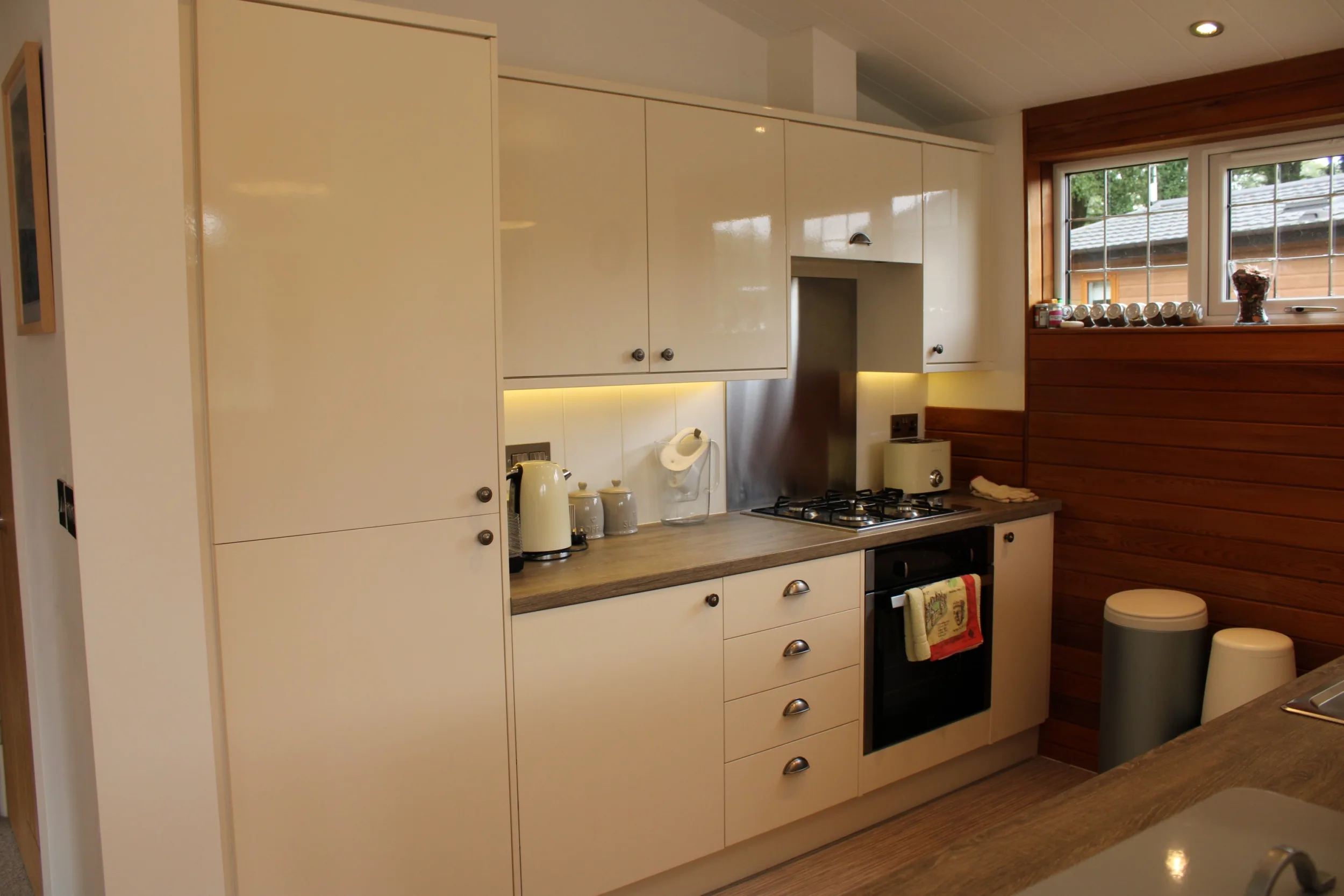 This selection of lodges really offers the perfect space to relax and unwind in your own special Devon hideaway. The Lodges are complete with full height & width glass on the front with a sliding door leading onto the lakes-edge balcony overlooking Middle Lake. Featuring a boot room entrance giving you plenty of space to store coats and shoes, this space is perfect for taking a seat and kicking off your boots after a long walk in the countryside. The open plan living area is perfect for rest and relaxation or entertaining the family in your home away from home. This selection of lodges feature a contemporary kitchen that is practical & spacious, complete with fully integrated appliances and an island/breakfast bar, perfect for socialising over breakfast.