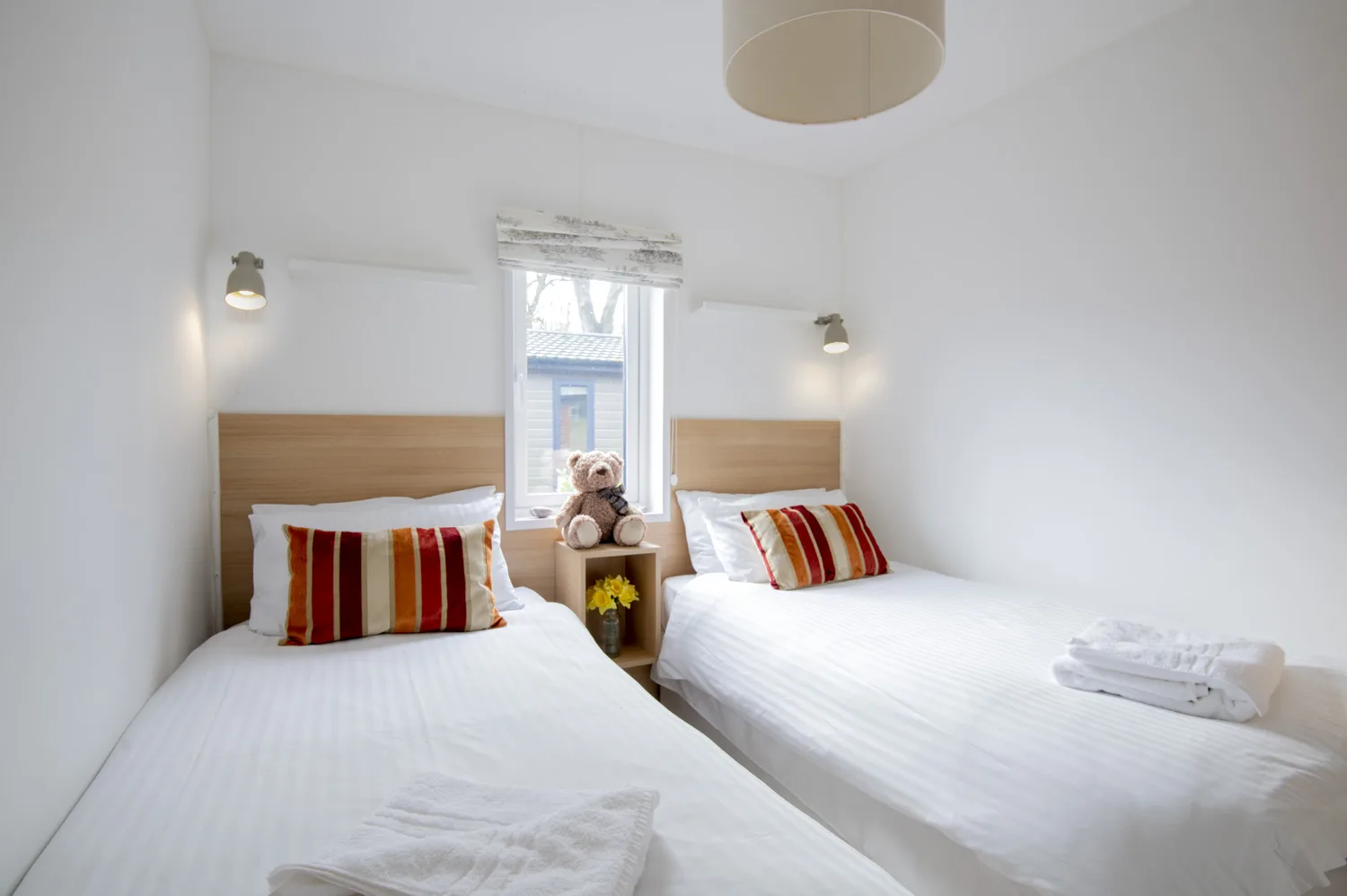 All the luxury you could ever want on a family holiday! Including a master bedroom with king-size bed and separate dressing area, plus open plan living with vaulted ceilings and fully glazed end wall with beautiful views of the lake and countryside. Maximum 3 dogs /pets allowed.