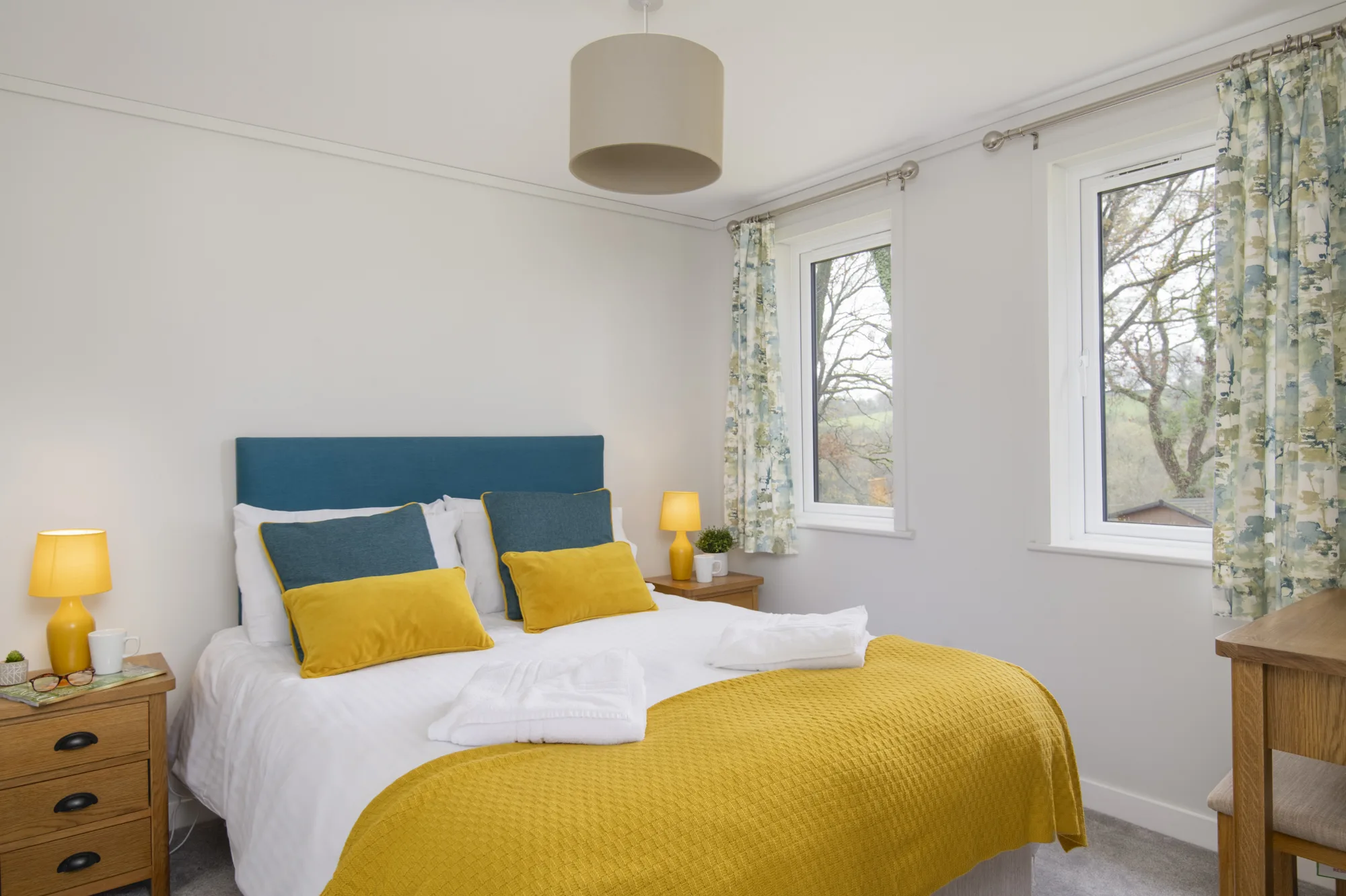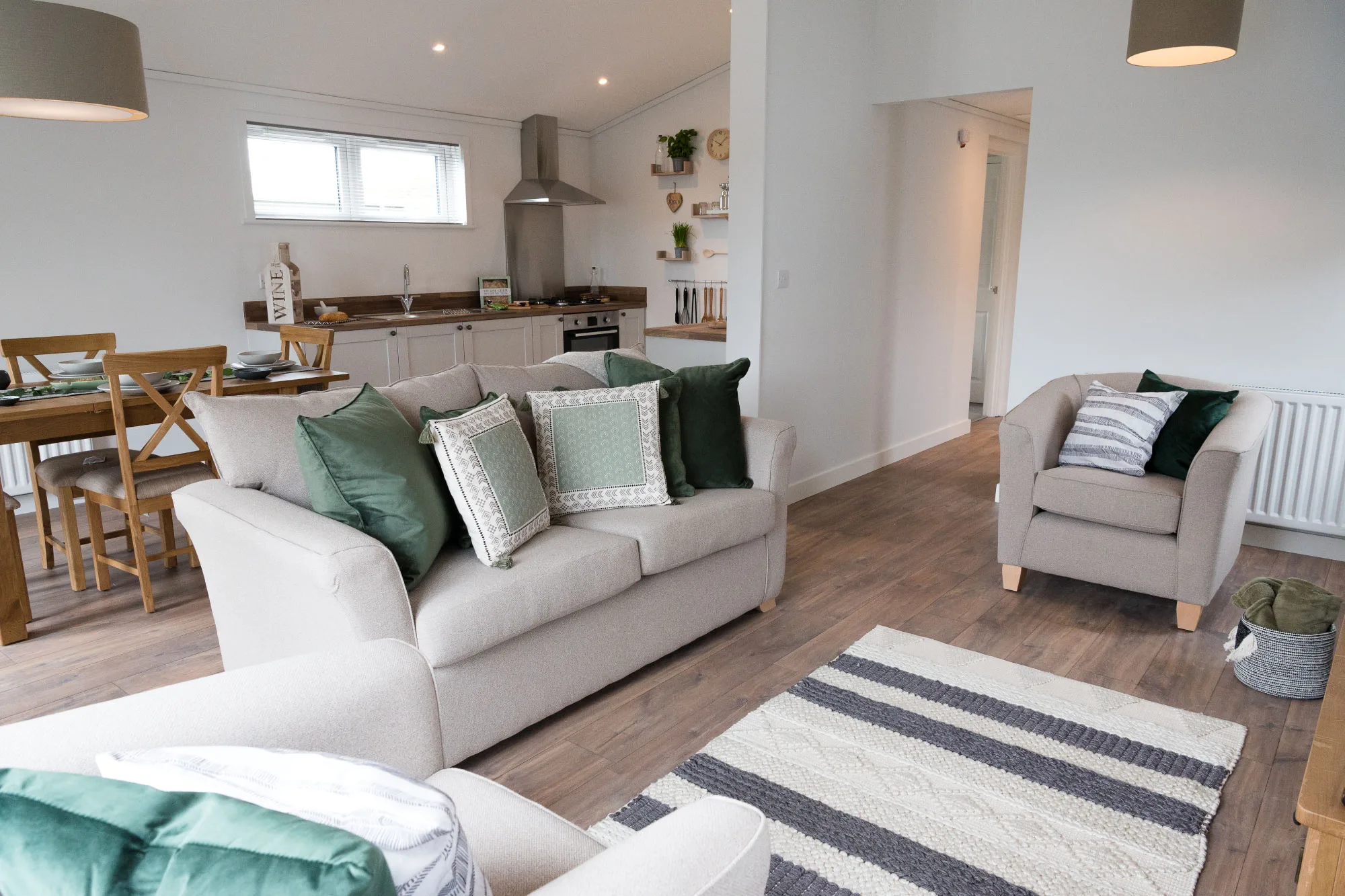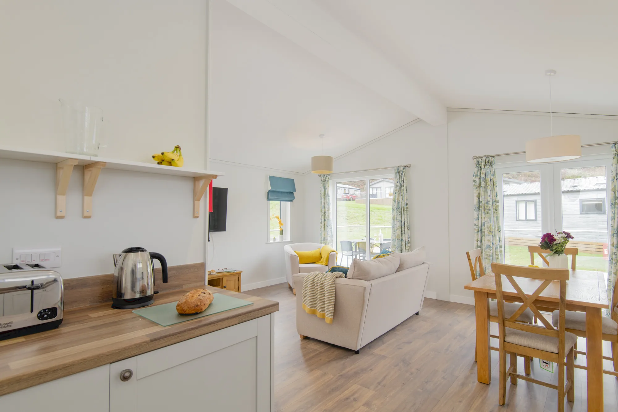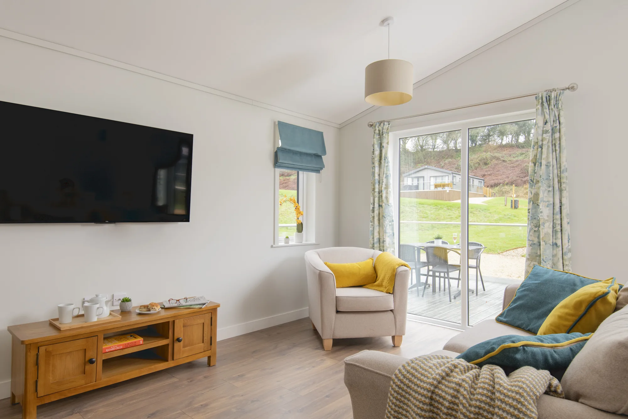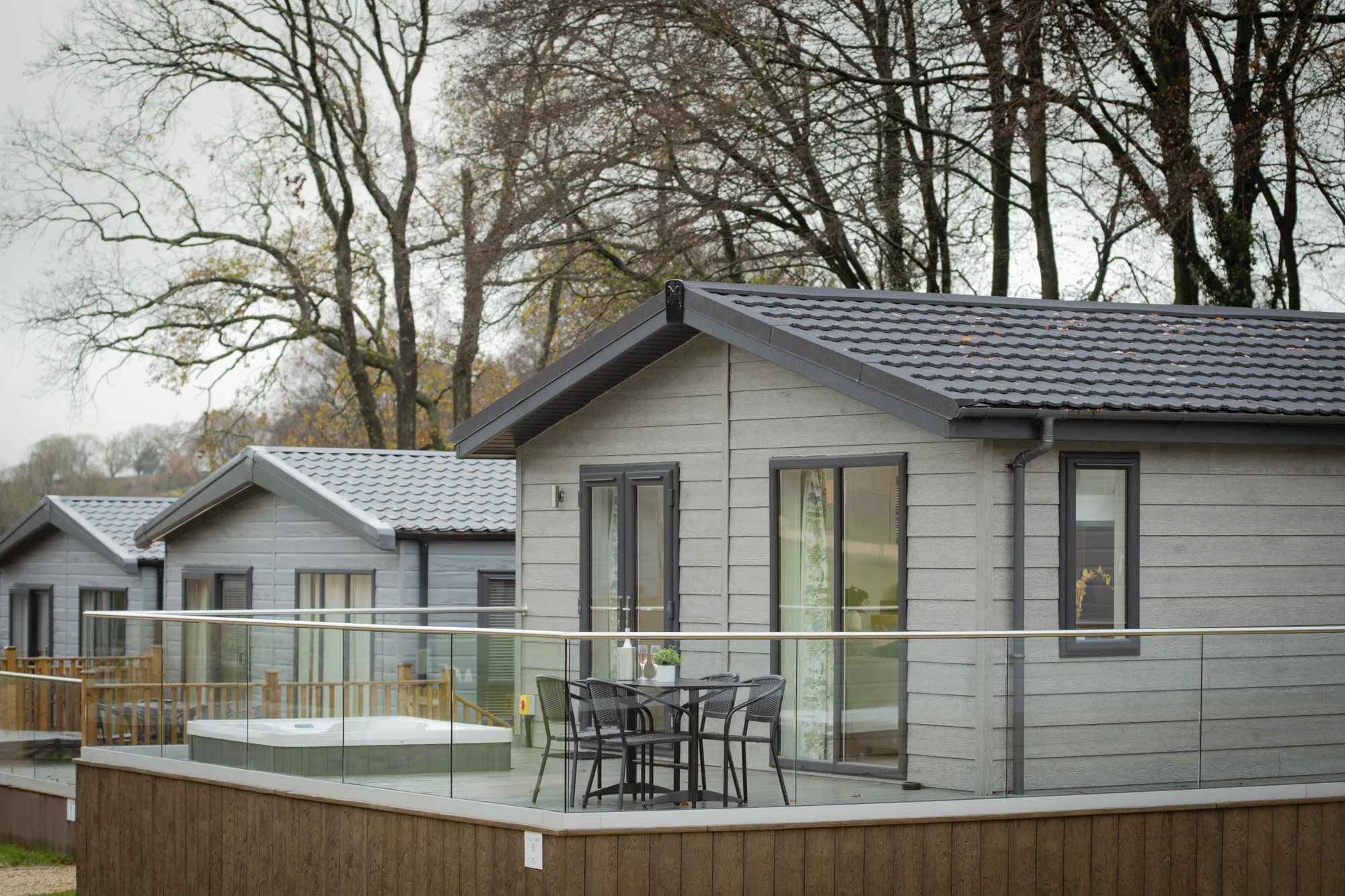 The Valley Park View 2 bedroom Lodges have 1 double bedroom with en-suite and 1 twin bedroom. The family bathroom has a bath and the modern, open plan kitchen includes a microwave and wine cooler. The spacious lodges are tucked away near the Top Lake and are complete with 2 private parking spaces, EV charger (usage charges apply), and a decking with hot tub allowing you to relax in the natural surroundings of the peaceful estate. Pets are welcome – maximum 3 dogs /pets allowed.